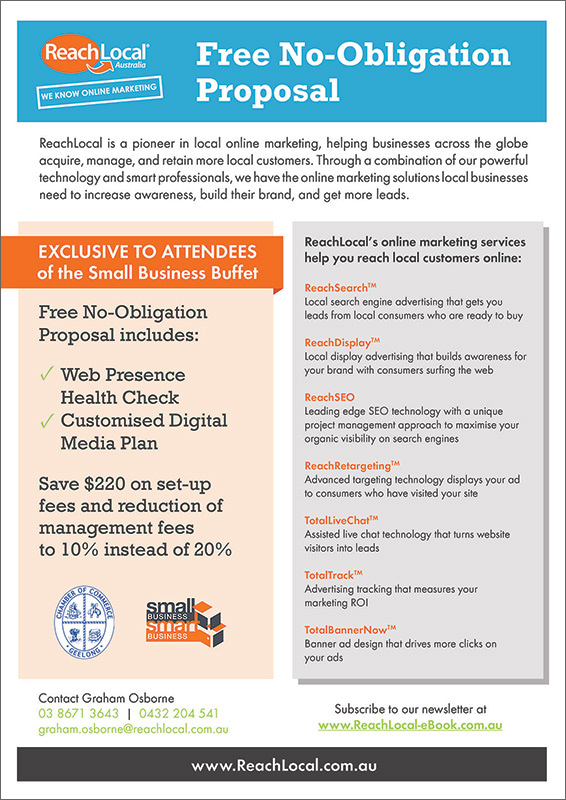 Your website is your Marketing engine room, which drives your business forward. If just one component isn’t working, the whole system is compromised – making your online marketing less efficient. ReachLocal’s WebPresenceScore.com.au will analyse your website functionality and compare it to your local industry average, giving you insight into what repairs are required, as well as what enhancements can be made ensure continued success!